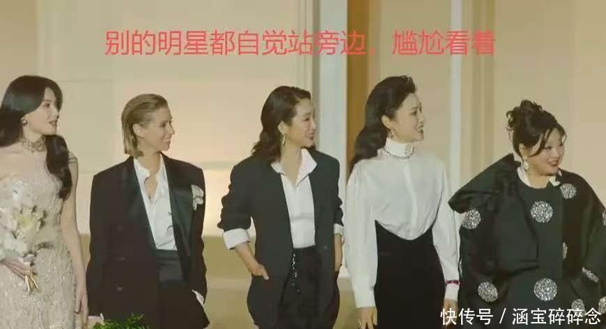 她在最后的合照环节,别的明星还在寒暄时,她已经早早的就去占位置。即使她在其他明星看热闹以及诧异的眼光下,稳站在C位,好似也没有觉得有什么不妥。