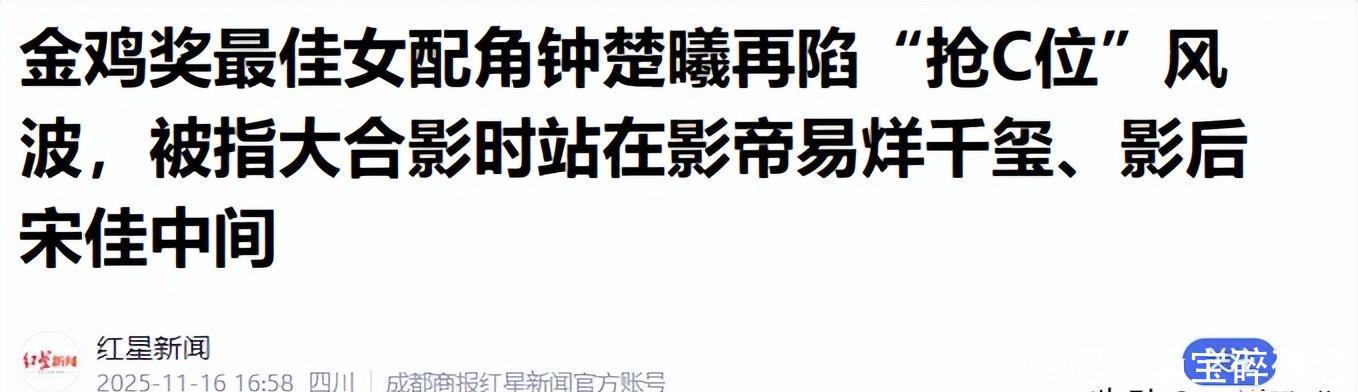 也希望钟楚曦能“吃一堑长一智”,要知道在娱乐圈混,迟早是要还的。所以,还是要把尊重前辈和分寸感时刻记在心里。对此,大家有什么想说的?欢迎在评论区留言讨论……参考信息源:[1].官方媒体红星新闻《金鸡奖最佳女配角钟楚曦再陷“抢C位”风波,被指大合影时站在影帝易烊干玺、影后宋佳中间》2025.11.16但为提升文章可读性,细节可能存在润色,请理智阅读,仅供参考!